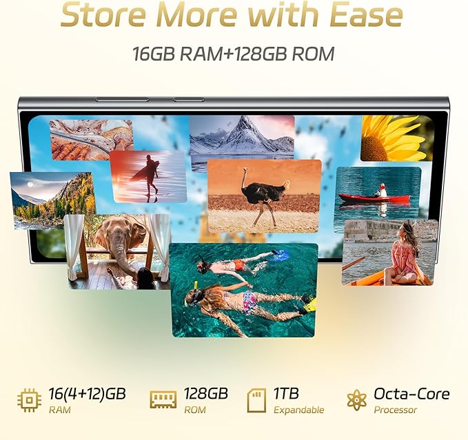 • Powerful Performance Meets Ultimate Freedom: The OUKITEL C61 unlocked cell phone offers a seamless user experience with the latest Android 15.0 operating system. Powered by an Octa-core Processor, it ensures smooth multitasking and fast app launches. 16GB (4GB+12GB virtual) RAM and 128GB ROM expandable up to 1TB, you can store all your apps, photos, and videos without worry. This high-performance smartphone is perfect for both work and play, making it a top choice among mobile phones.